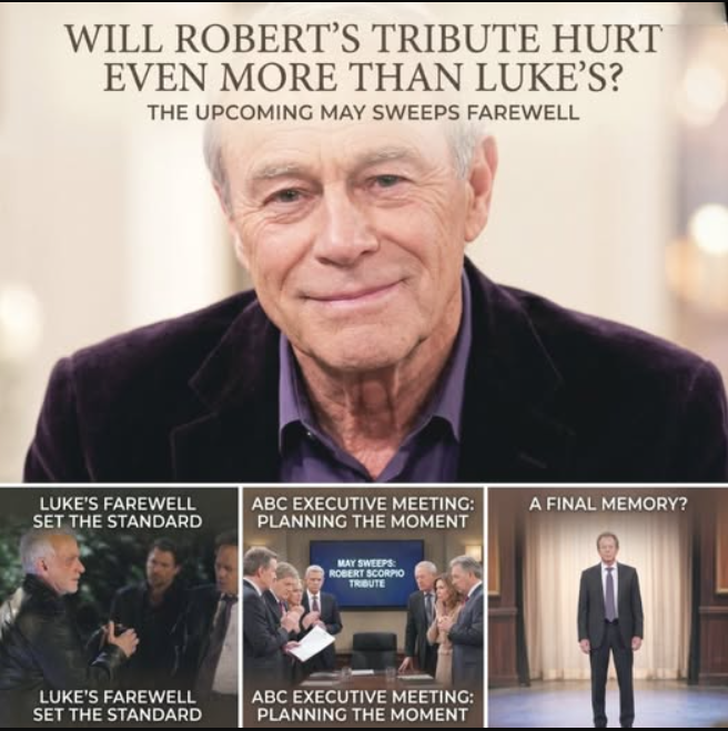Something about this goodbye feels different—and fans can sense it. Instead of rushing to air a farewell, rumors now suggest ABC may be holding Robert Scorpio’s tribute for a moment that truly matters. If true, this would not be a quick exit or a simple goodbye scene. It would be a carefully timed emotional event designed to carry real weight, possibly during May Sweeps when every storyline hits its peak. That possibility is exactly why viewers are already comparing it to Luke Spencer’s unforgettable farewell. And for many longtime fans, one question now feels impossible to ignore: could this goodbye hurt even more?
