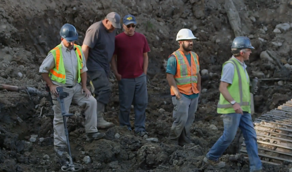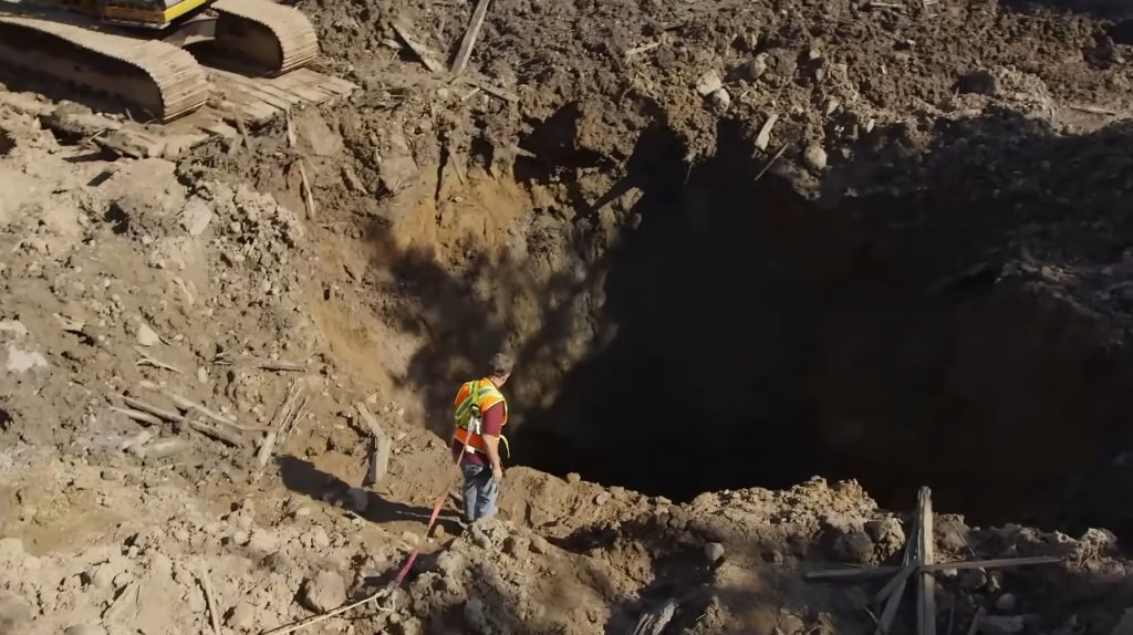 As the team worked through a section increasingly tied to pirate activity, the atmosphere around the dig shifted. The soil looked unstable, the timber fragments seemed oddly placed, and the exposed ground carried the eerie tension of a surface hiding more than mud beneath it. Rick moved forward to inspect the area more closely, but within seconds, the earth beneath him gave way.